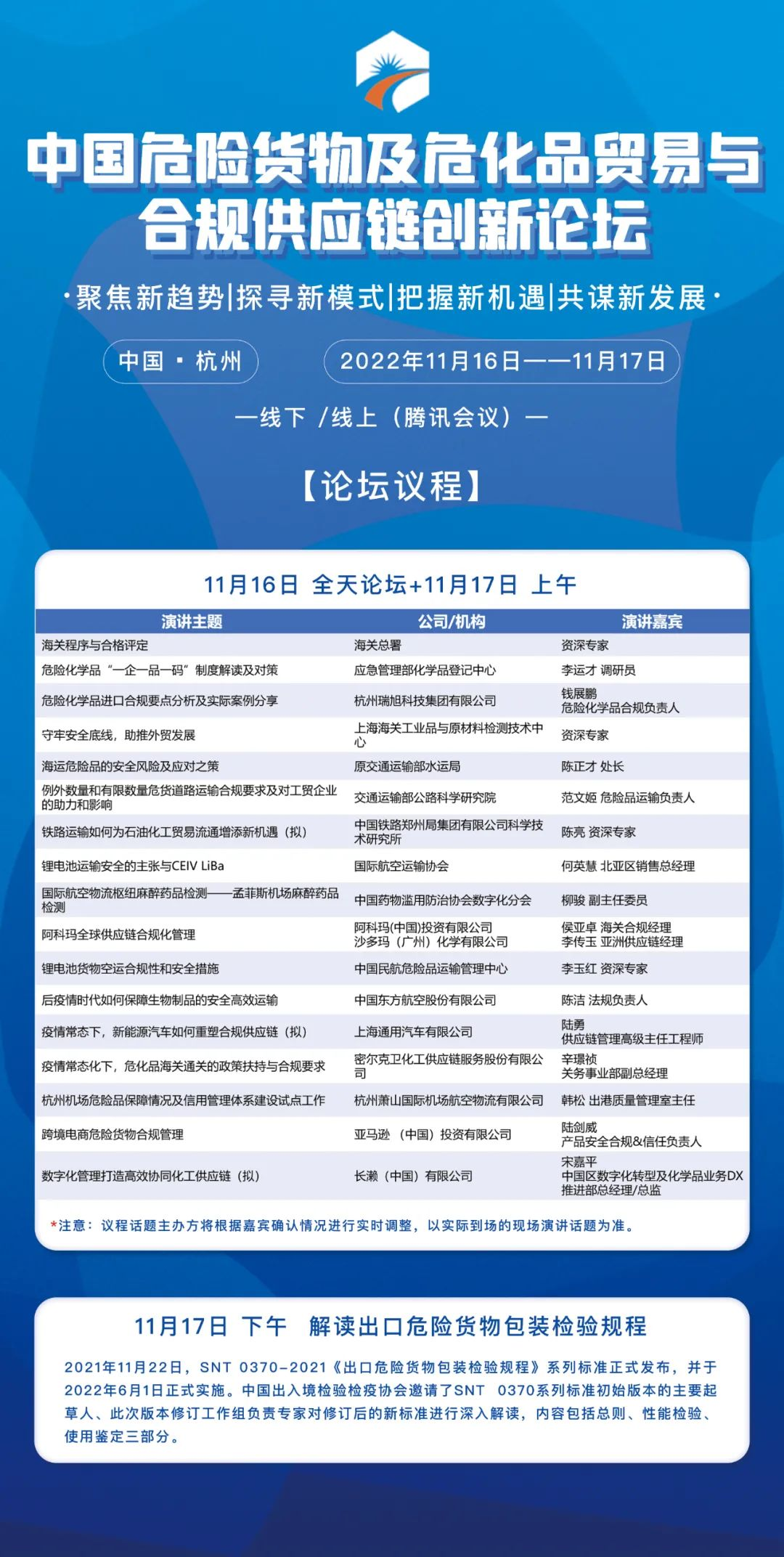 为贯彻落实民政部“关于充分发挥行业协会商会作用为全国稳住经济大盘积极贡献力量的通知”精神,服务国家“走出去”战略,助力行业企业开拓国际市场的要求,进一步推进我国化工行业的高质量发展,切实提高行业监管科学性,加强区域协作,改善国内危险货物贸易管理,消除国际国内航运及其他运输环节的安全隐患,维护供应链运行的安全有序及稳定性,保障人民生命财产安全,中国出入境检验检疫协会和上海蓝西企业管理咨询有限公司在危险货物及危化品发展大背景下,将于2022年11月16日和17日,在浙江杭州共同主办“中国危险货物及危化品贸易与合规供应链创新论坛”,富铤科技将协同瑞旭集团联合承办。