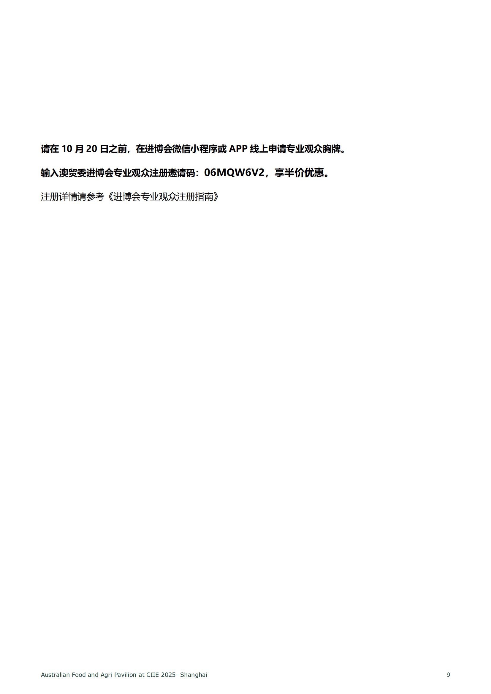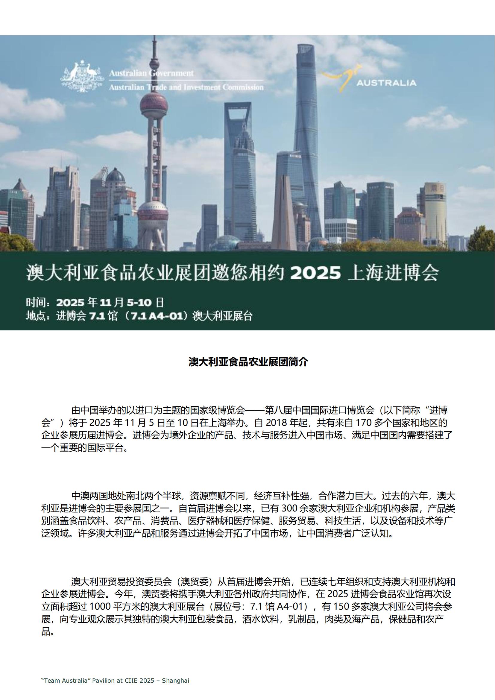 您现在的位置是:首页 > 工作动态与通知公告 转发:2025上海进博会澳大利亚品牌馆邀请函 发布日期:2025-10-17 字体: 【小】 【中】 【大】 分享: 热门文章: 王新会长受福建省市场监督管理局邀请作内外贸一体化专题演讲[2025-09-30] 中国出入境检验检疫协会在漳州成功举办CNAS实验室认可技术培训[2025-09-30] 中国出入境检验检疫协会助力海康威视打造中国科学仪器领域新质生产力[2025-09-22] 中国出入境检验检验协会提出的数字产品数据和隐私合格评定计划在第八届“一带一路”园区建设国际合作会议暨第二次网络安全国际合作专题论坛中得到热议[2025-09-22] 第22届中国—东盟博览会投资贸易促进活动——“生态原产地保护助力中国—东盟区域经济生态可持续高质量发展会议”在南宁成功举办[2025-09-20] 海关资讯 2025“一带一路”海关食品安全合作会议新闻发布会实录 2025“一带一路”海关食品安全合作会议在上海举行 前三季度货物贸易出口19.95万亿元,增长7.1%——我国外贸延续稳中向好势头 中欧班列中通道进出境班列货运量突破2000万吨 新增15种次!“丝路美食”加速走向中国餐桌 2025“一带一路”海关食品安全合作会议举行 海关总署公告2025年第199号(关于进口比利时宠物食品检疫和卫生要求的公告) 海关总署公告2025年第198号(关于进口厄瓜多尔野生水产品检验和卫生要求的公告)
